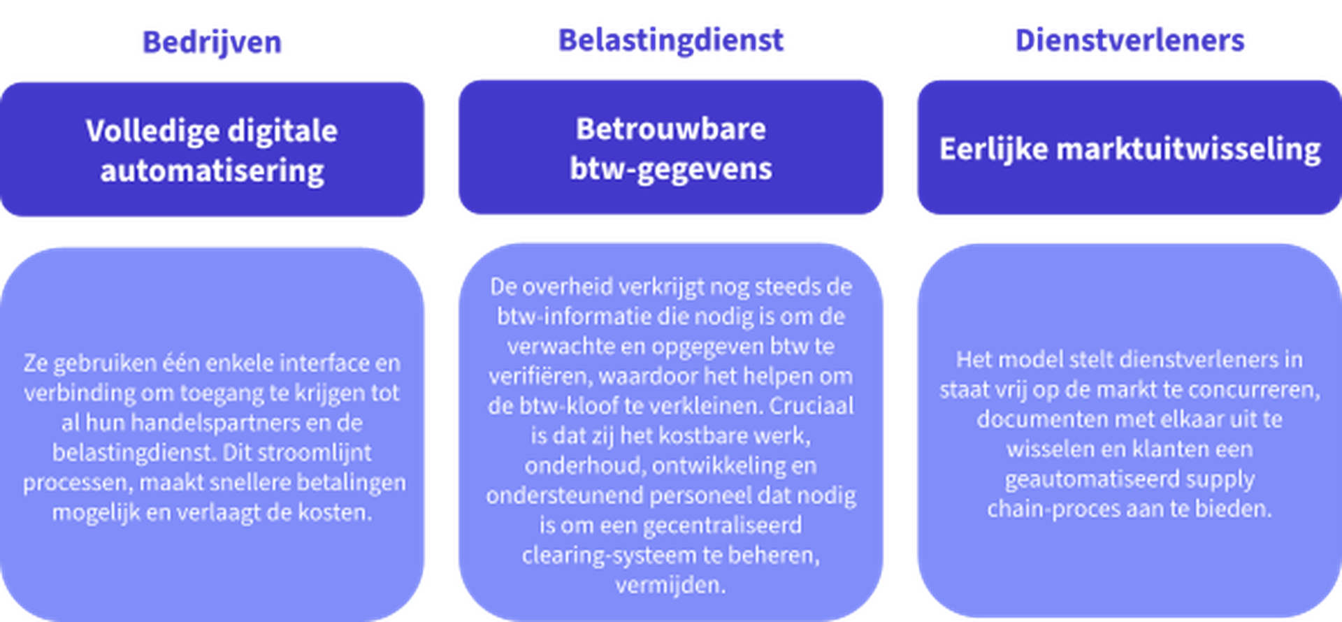 Deze modellen maken de gedecentraliseerde uitwisseling van informatie tussen handelspartners mogelijk via een netwerk van gecertificeerde dienstverleners, zonder dat er realtime rapportage aan de overheid nodig is. Veel bedrijven kiezen voor deze modellen vanwege wettelijke verplichtingen én de aanzienlijke zakelijke voordelen, zoals meer automatisering en efficiëntere verwerking van supply chain-documenten.